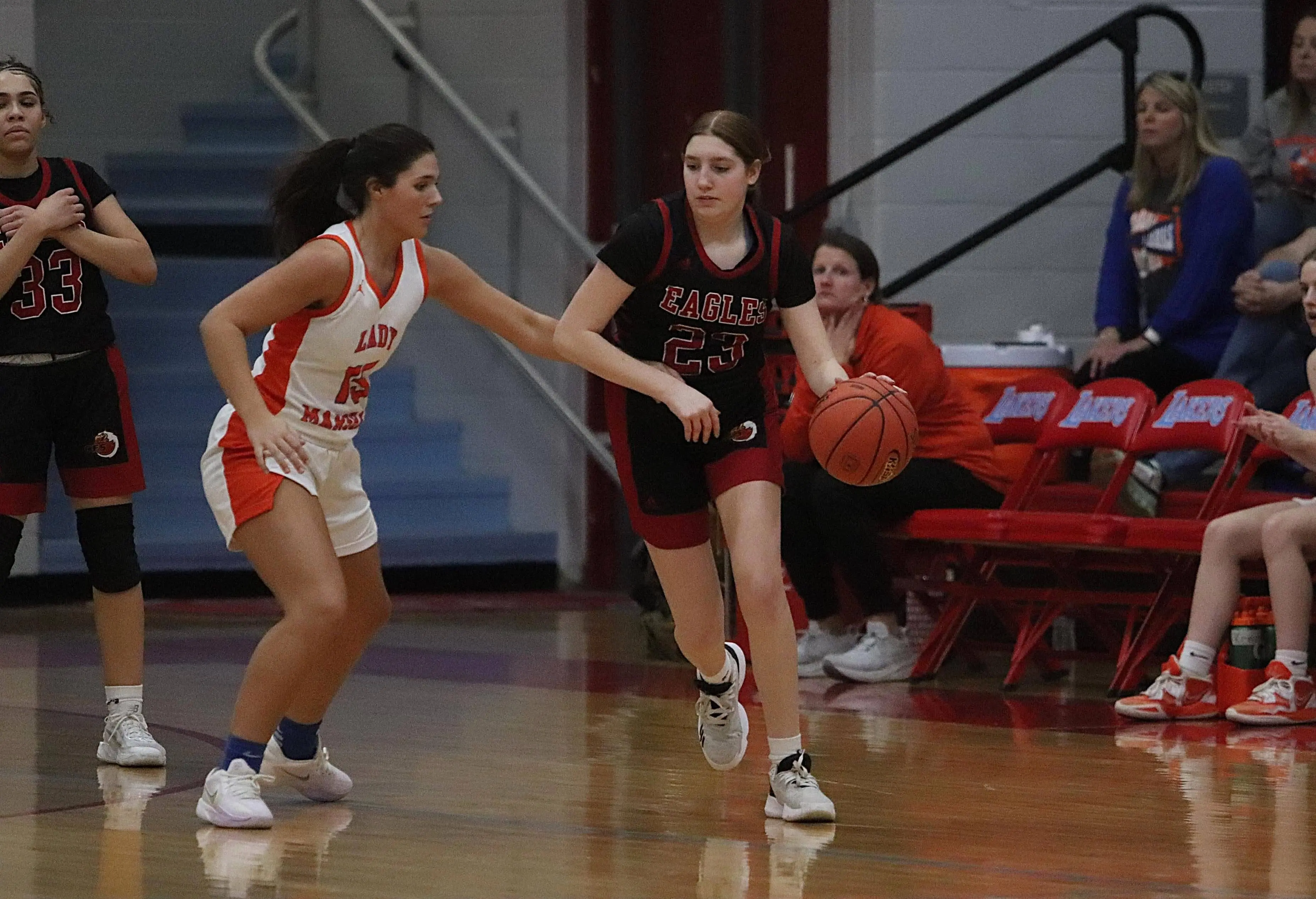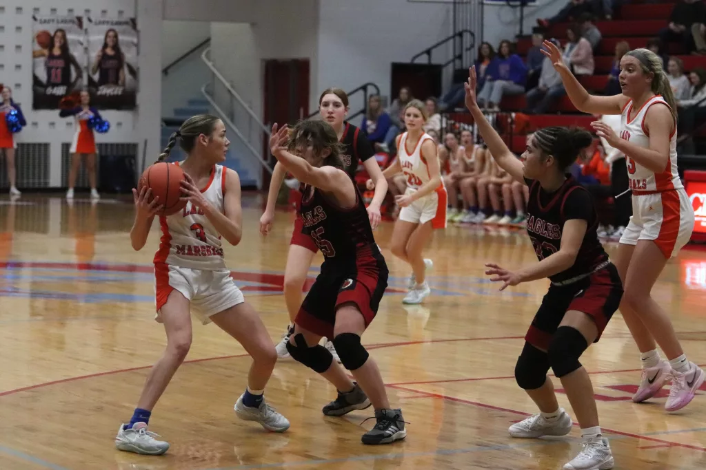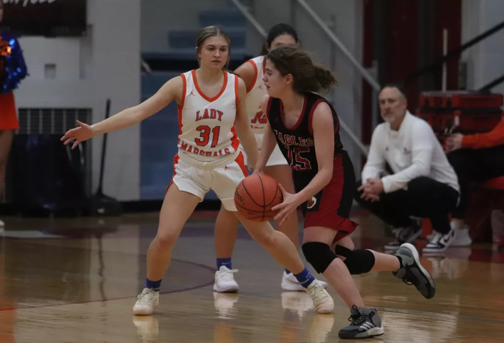 The Lady Marshals shut out the Lady Eagles in the third quarter while scoring 19 points to extend the lead to 60-12.