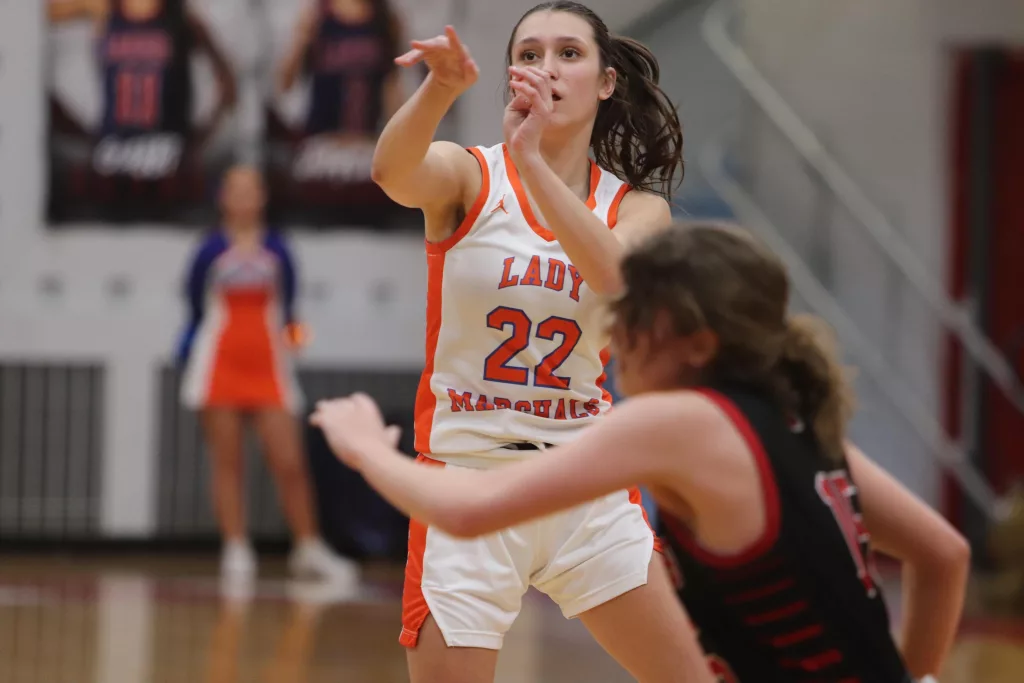 Skylar Waller led the Lady Marshals in scoring with 23 points and made seven 3-pointers. The first nine points of the game came from beyond the arc, Waller hitting two on either side of one by Kenzlee Terry.
