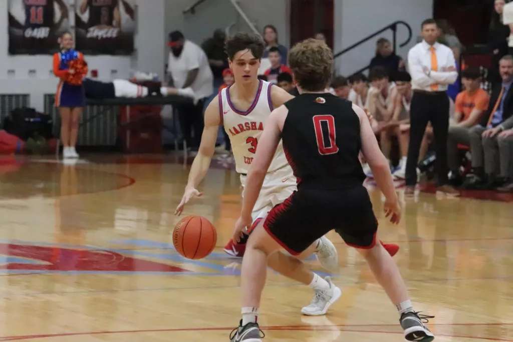 A 10-3 lead to start the game by Marshall County was cut to four on a 3-pointer by Jakin Burnett for CFS. The lead was trimmed to four two more times in the quarter at 13-9 and 20-16 before a 6-0 run by the Marshals pushed it out to 10 and they held the 10-point lead going into the second quarter up 28-18.