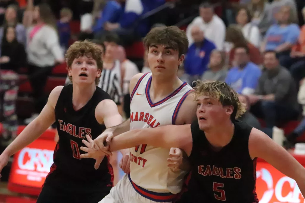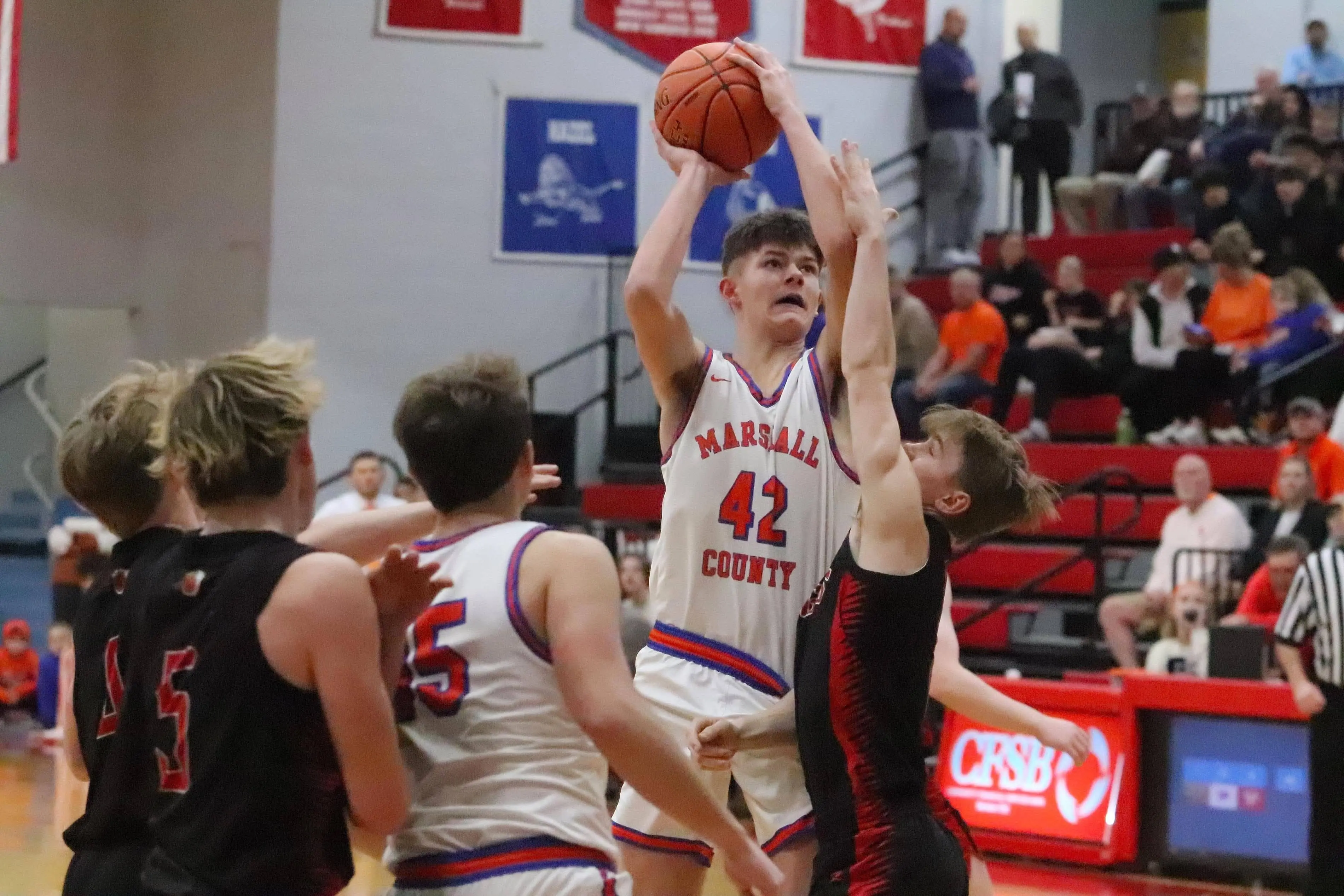 Marshall County (27-1): Matthew Langhi 20, Tommy Robertson 18, Kaden Mohler 13, Kyzer Phillips 12, Carson Lovett 7, Neyland Jezik 5, Tanner Linsin 4, J.T. Hall 4, Lawson Arnold 3, Kruz Powell 2, Blake Moore 2