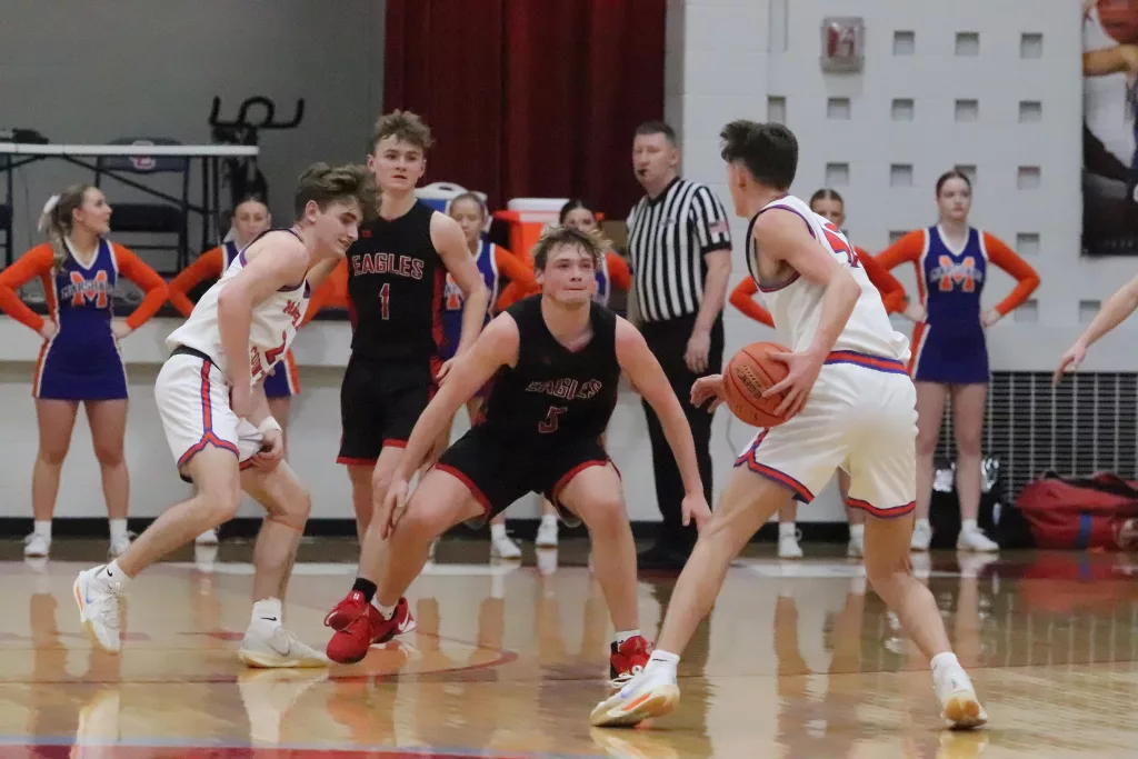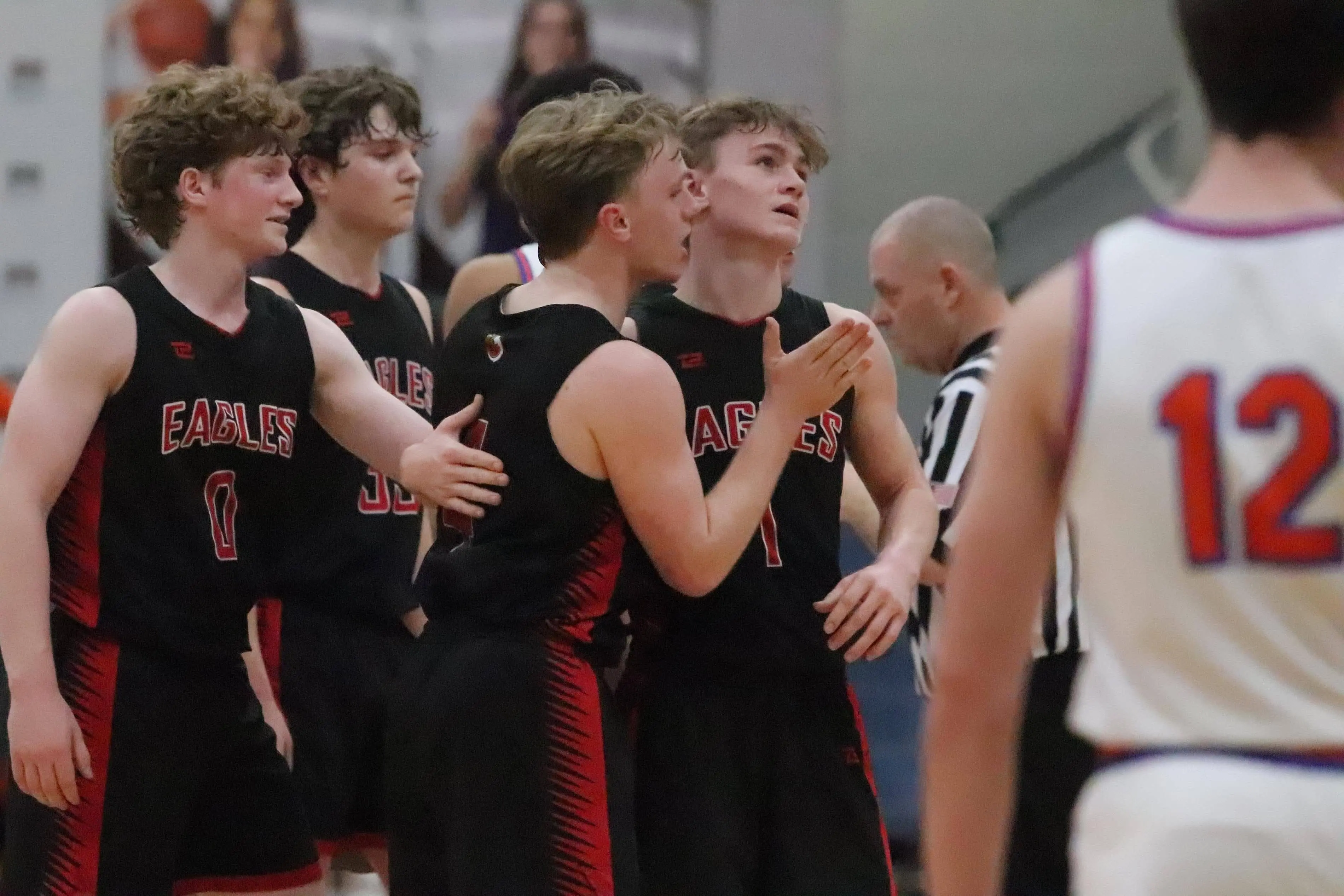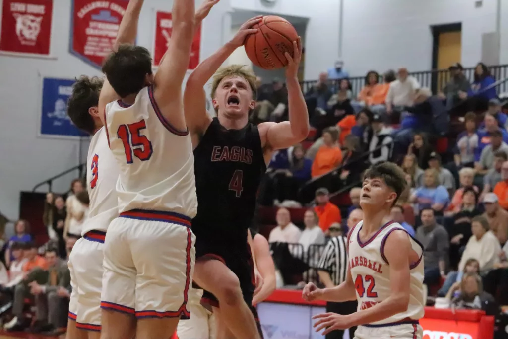 Tommy Robertson led the 3-point attack with three in the half, Kaden Mohler and Kyzer Phillips had two a piece while Matthew Langhi and Neyland Jezik each hit one. Langhi led the Marshals first half scoring with 18 points and Elijah Grigg led the Eagles with 16.