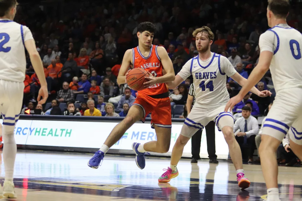 Marshall County faced off against Graves County on Wednesday at the CFSB Center in their opening round game of the Mercy Health Region 1 Tournament. With a 47-37 victory, the Marshals secured their spot in the semifinals on Saturday.