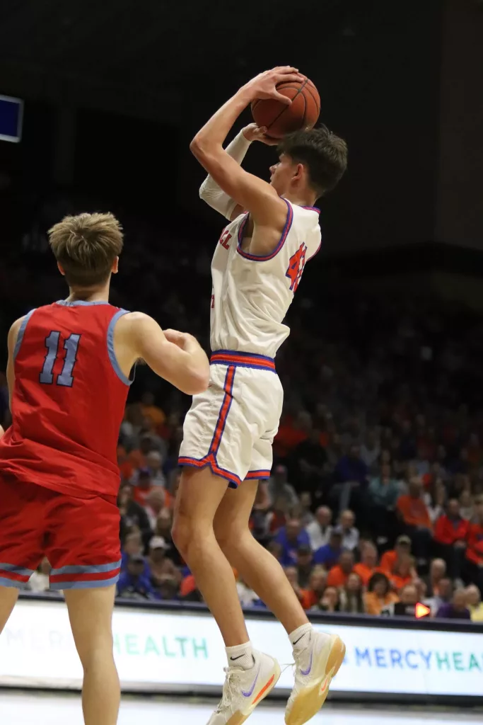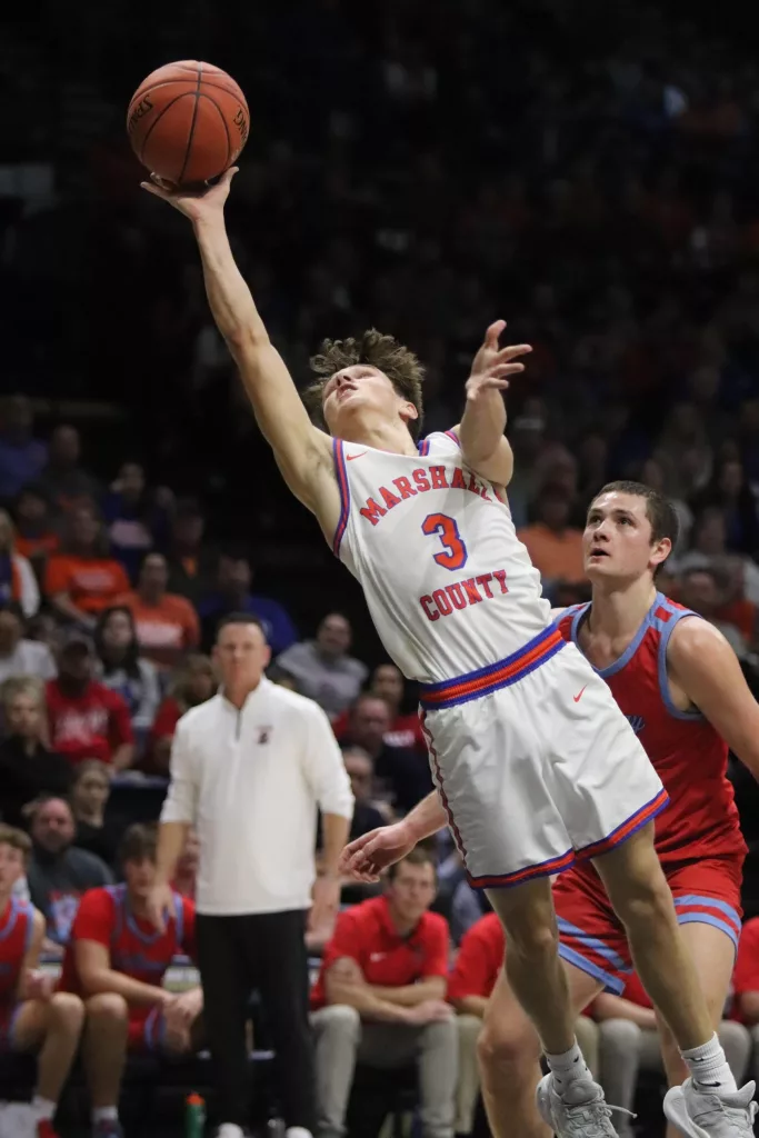 Butler tipped in a missed shot by Eli Finley to push their lead to double digits. While the Lakers couldn’t seem to miss, baskets weren’t falling for the Marshals. Down 29-19, Marshall County cut the deficit to six after baskets by Langhi and Tommy Robertson but still trailed 33-25 at halftime.