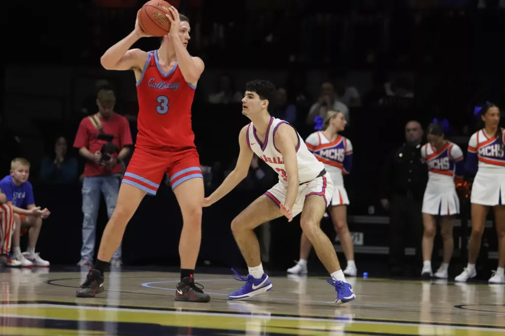 Trailing 5-0 to start the game, Kyzer Phillips dropped in their first points from beyond the arc then was fouled shooting a three by Calloway’s Connor Lockart. The senior stepped to the line and hit all three free throws to pull the Marshals to within one at 7-6.