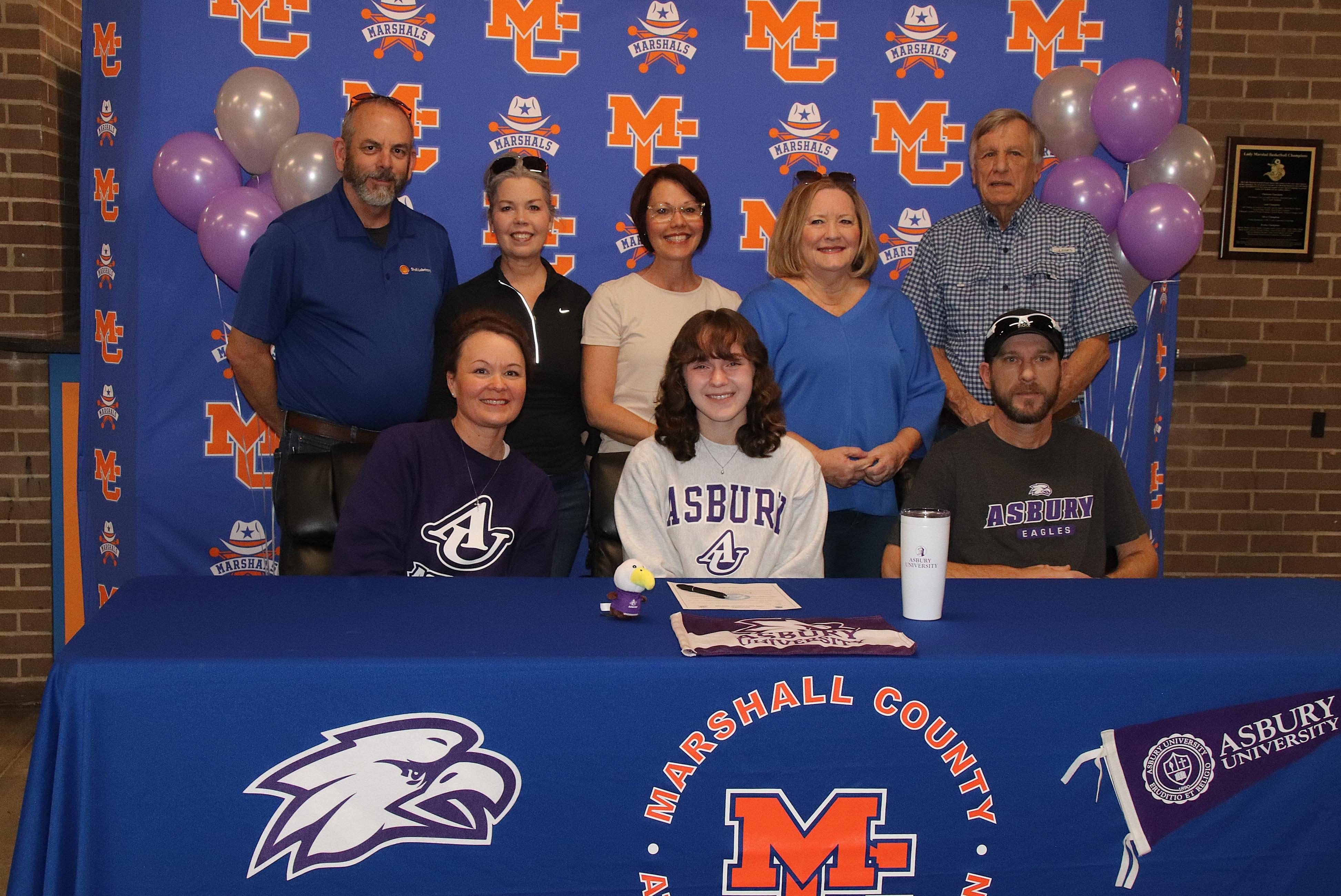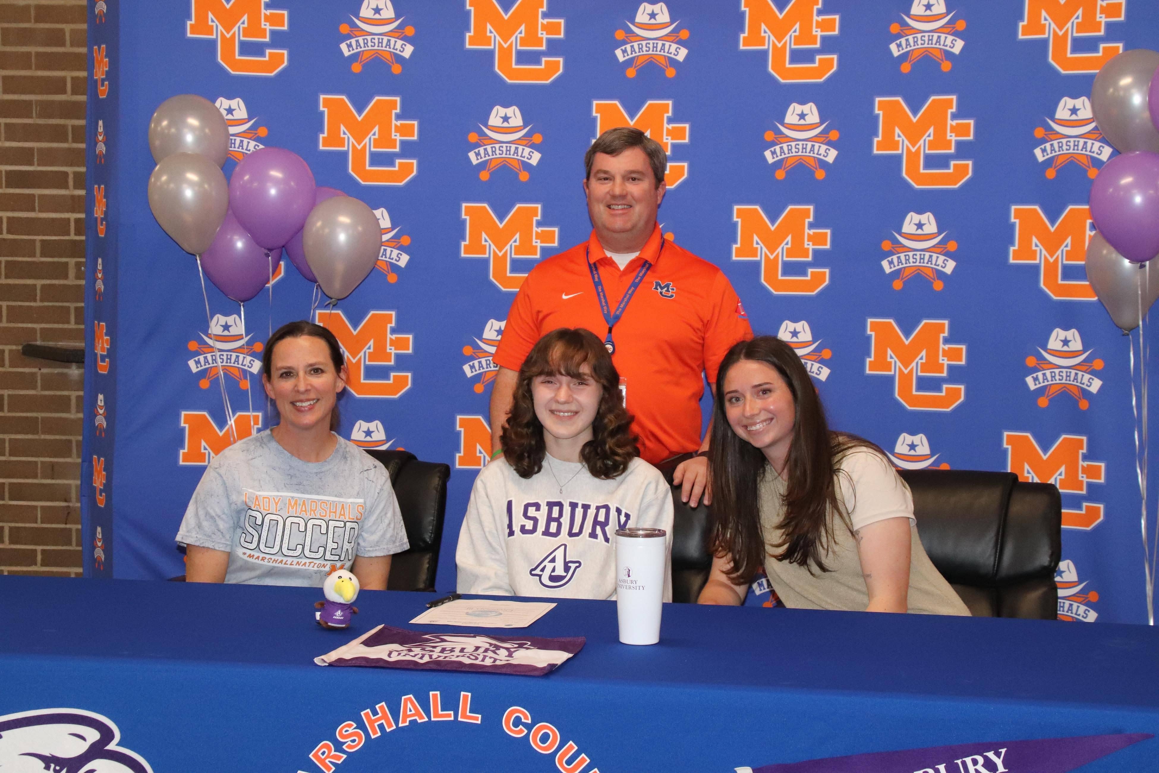 Marshall County soccer player Macy Scott signed on Wednesday to continue her soccer career at Asbury University in Wilmore, Ky. Macy was a vital part of the Lady Marshals soccer team’s two district championships and three regional championships during her high school career.
