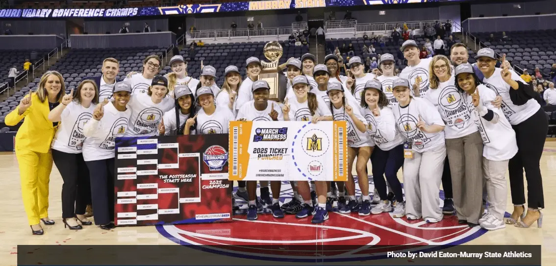 The Murray State Racers completed an impressive three-day run of championship play Sunday when they defeated the Belmont Bruins 83-62 to win the Credit Union 1 Missouri Valley Conference Women’s Basketball Tournament championship at the Ford Center in Evansville, Indiana.