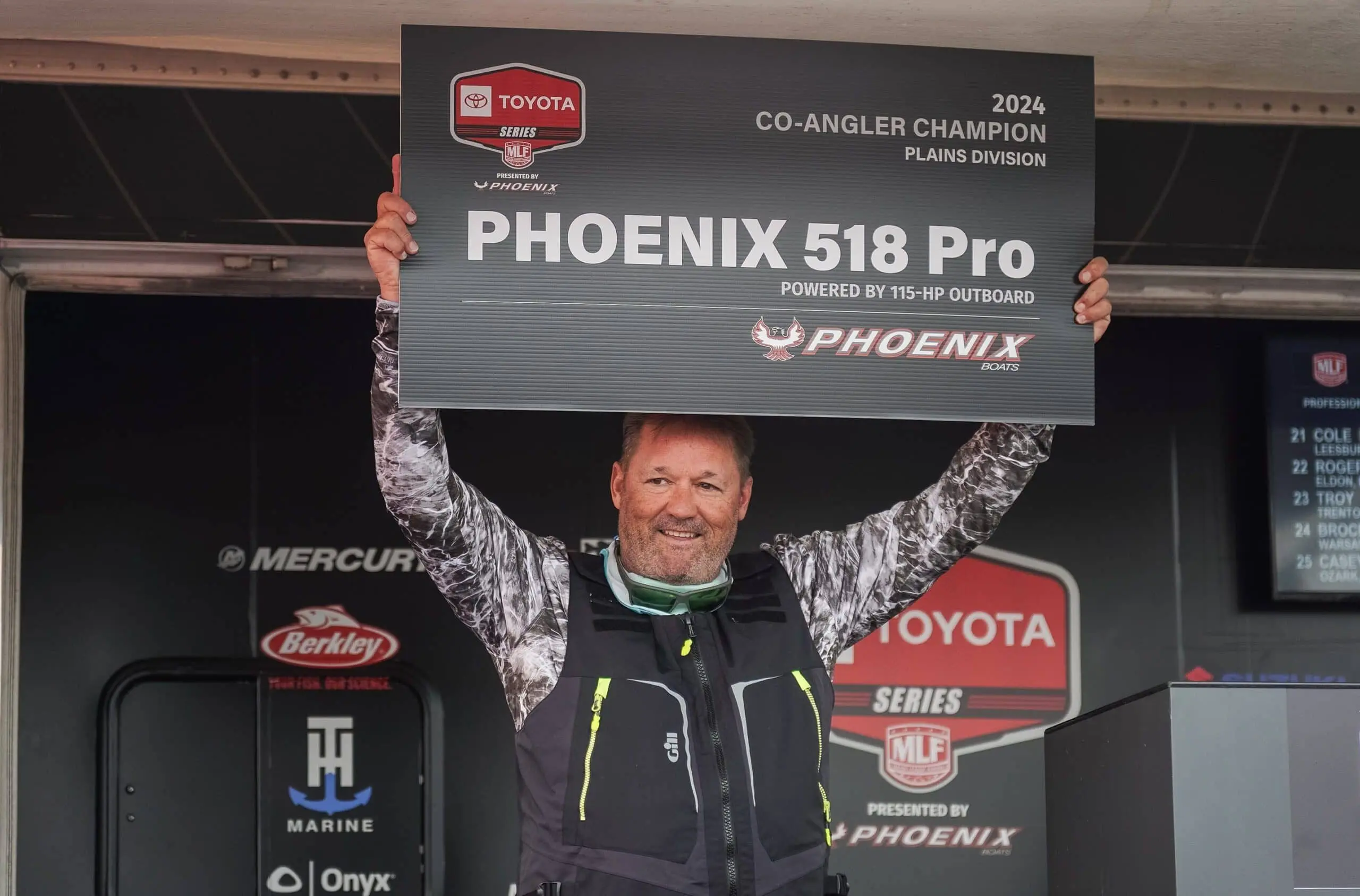 In Toyota Series regular-season competition, payouts are based on the number of participants competing in the event, scaling up for every 20 boats over 160 and scaling down for every boat below 160. With a 160-boat field, pros fish for a top prize of up to $75,000, if Phoenix MLF Bonus qualified. Co-anglers cast for the top prize of a new Phoenix 518 Pro bass boat with a 115-horsepower Mercury or Suzuki outboard (valued at $33,500). With a 260-boat field, pros fish for a top award of up to $100,000, if Phoenix MLF Bonus qualified. Co-anglers compete for the top prize of a new Phoenix 518 Pro bass boat with a 115-horsepower Mercury or Suzuki outboard plus $5,000 cash.