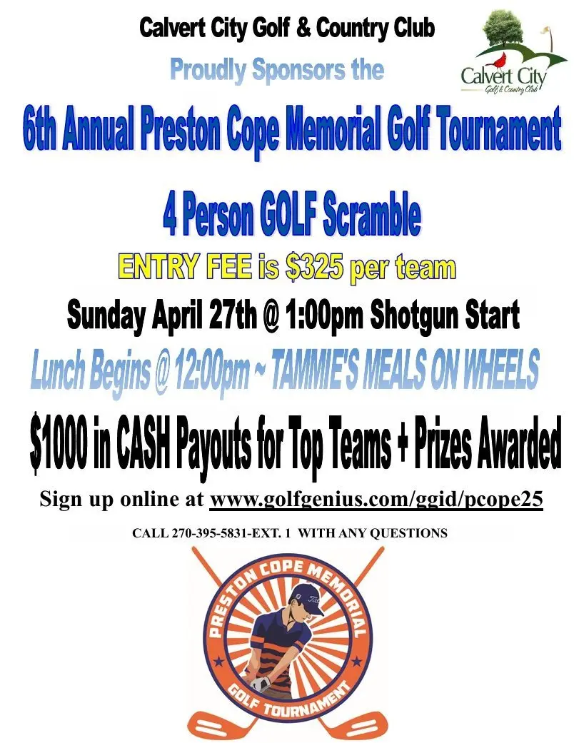 6th Annual Preston Cope Memorial Golf Tournament Sunday, April 27