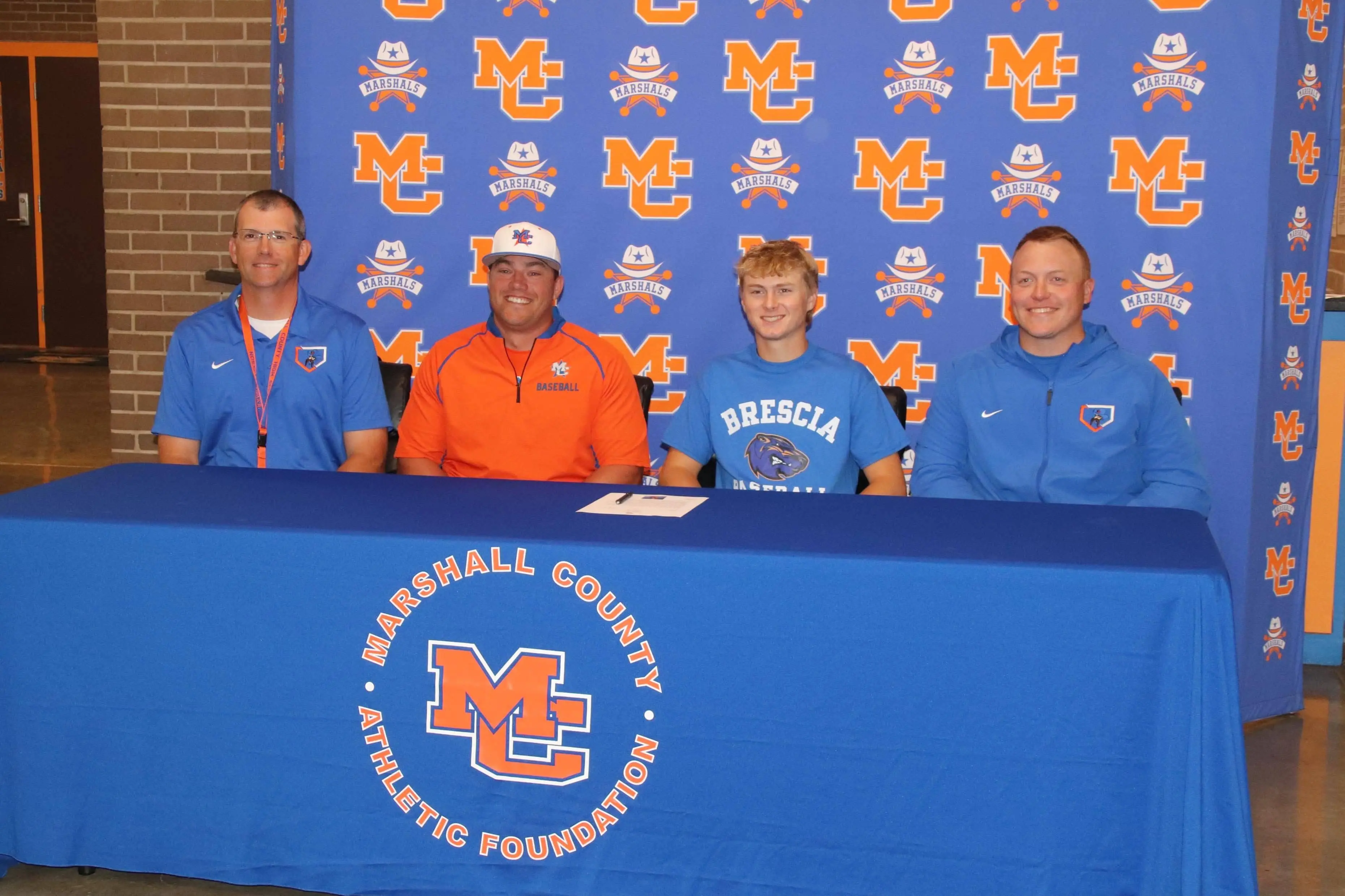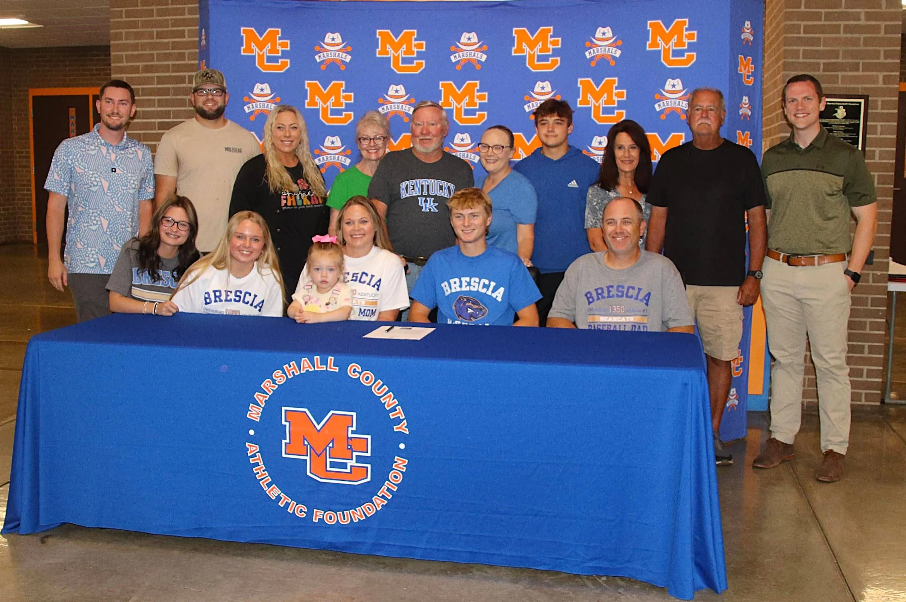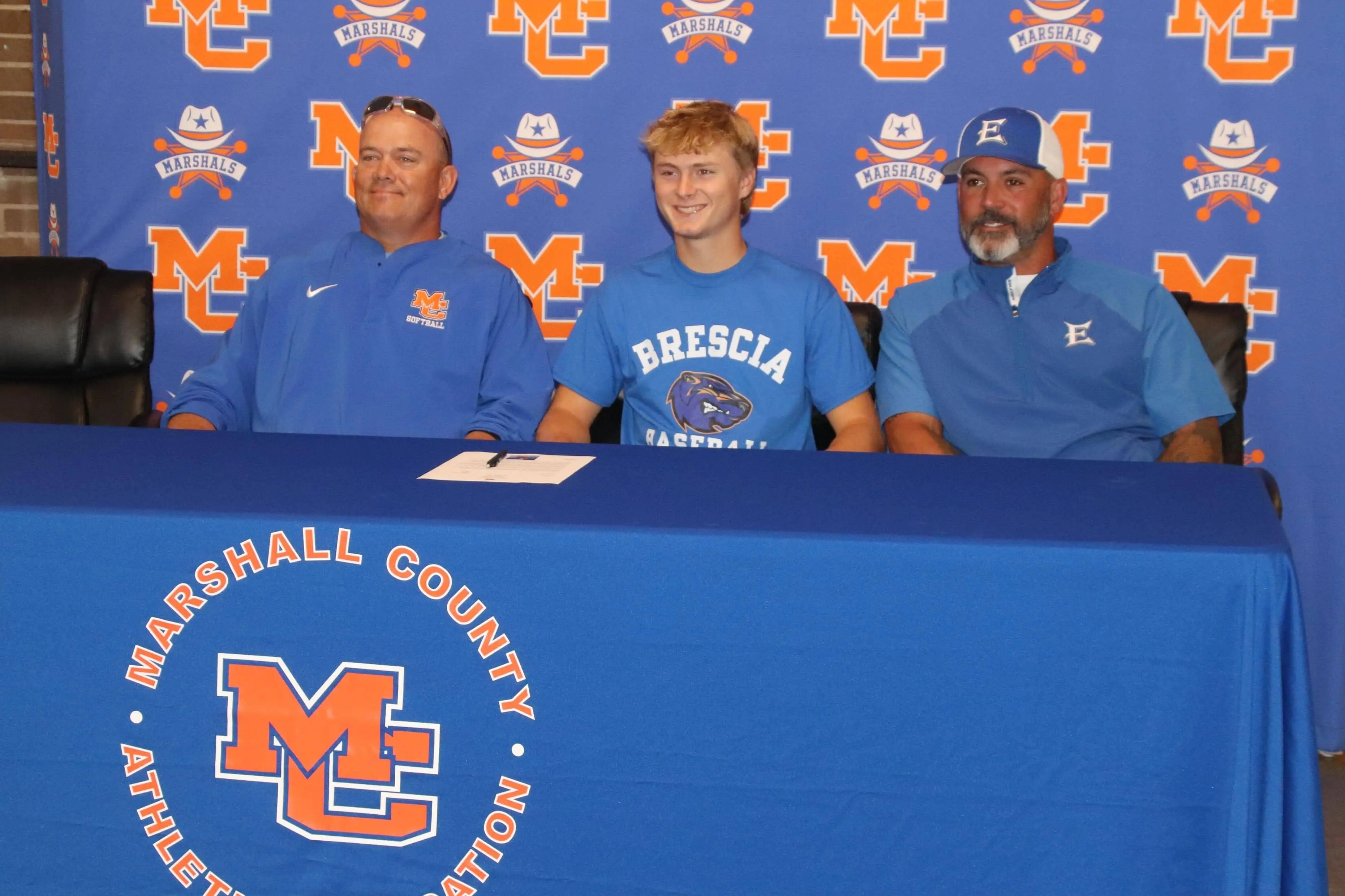 Marshall County baseball player Clayton Wyatt has committed to continue his academic and athletic career at Brescia University in Owensboro, Ky. A four-year starter behind the plate, Clayton has been a cornerstone of the Marshals’ defense and a steady presence in the lineup since his freshman year.