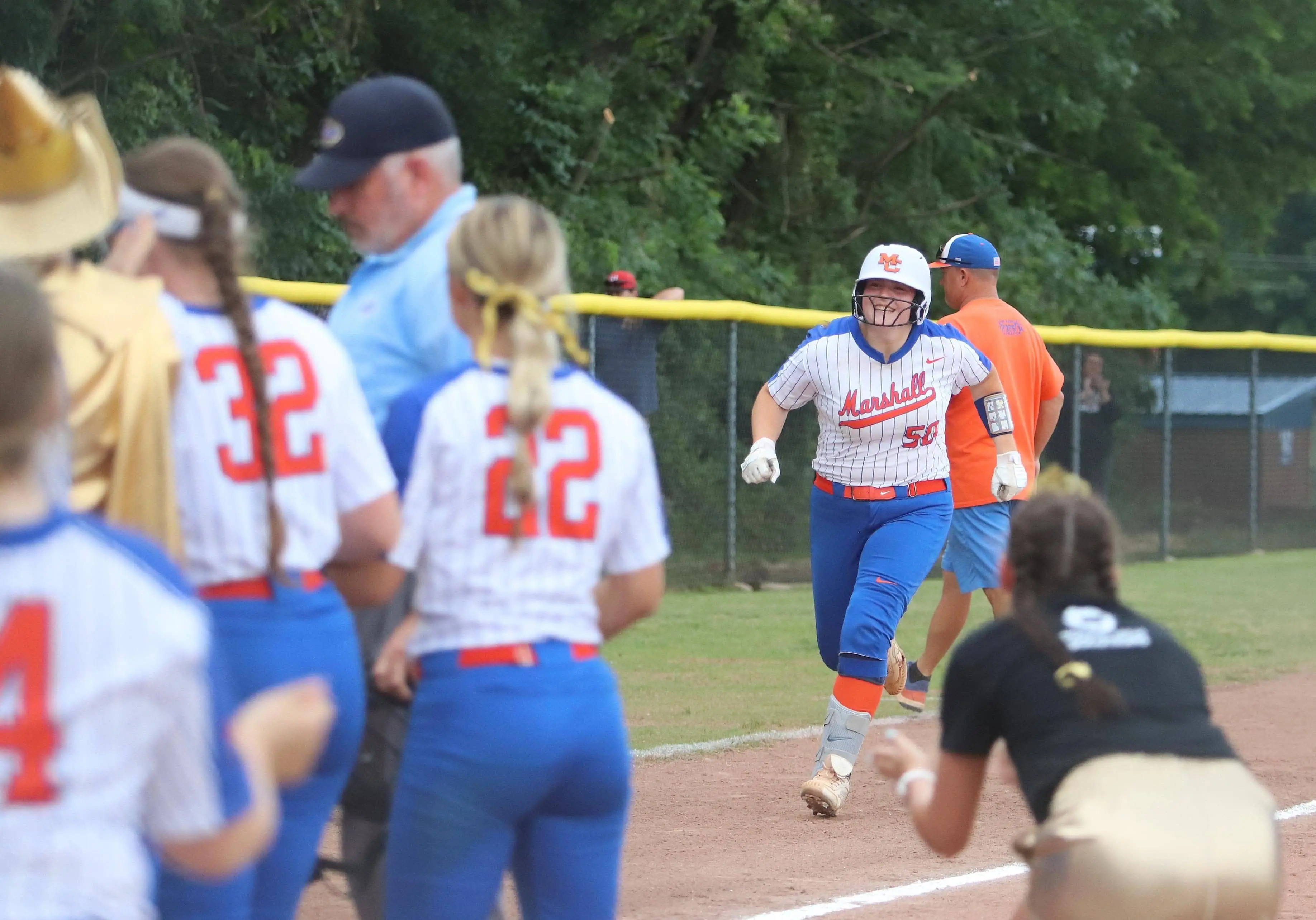 The Lady Marshals regained control in the fifth. Emma-Leigh Reynolds led off with a single, and Harris followed by drawing a walk. With two outs, Trinlee Anderson delivered an RBI single, and Kadence Cavitt followed with a two-run double to make it 5-2.