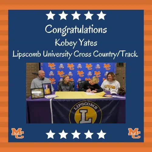 Distance specialist Kobey Yates signed to run cross country and track and field at Lipscomb University in Nashville, Tennessee, capping an eight-year career with Marshall County’s programs.