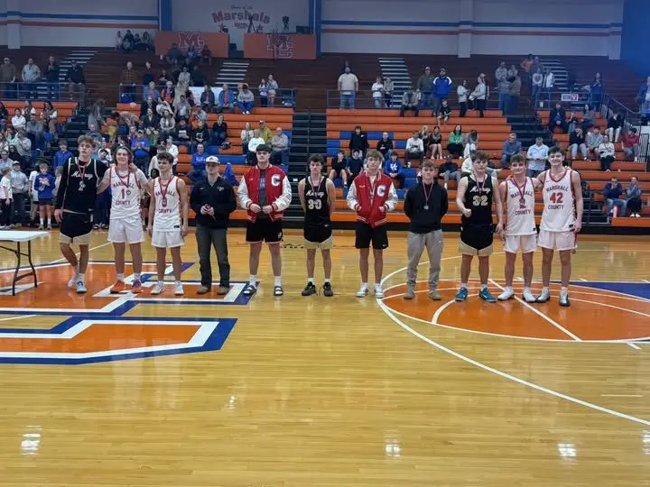 Four Marshall County players were recognized on the All-4th District Team following the game: Kaden Mohler (#3), Ryan Stokes (#2), Matthew Langhi (#42), and Neyland Jezik (#1).